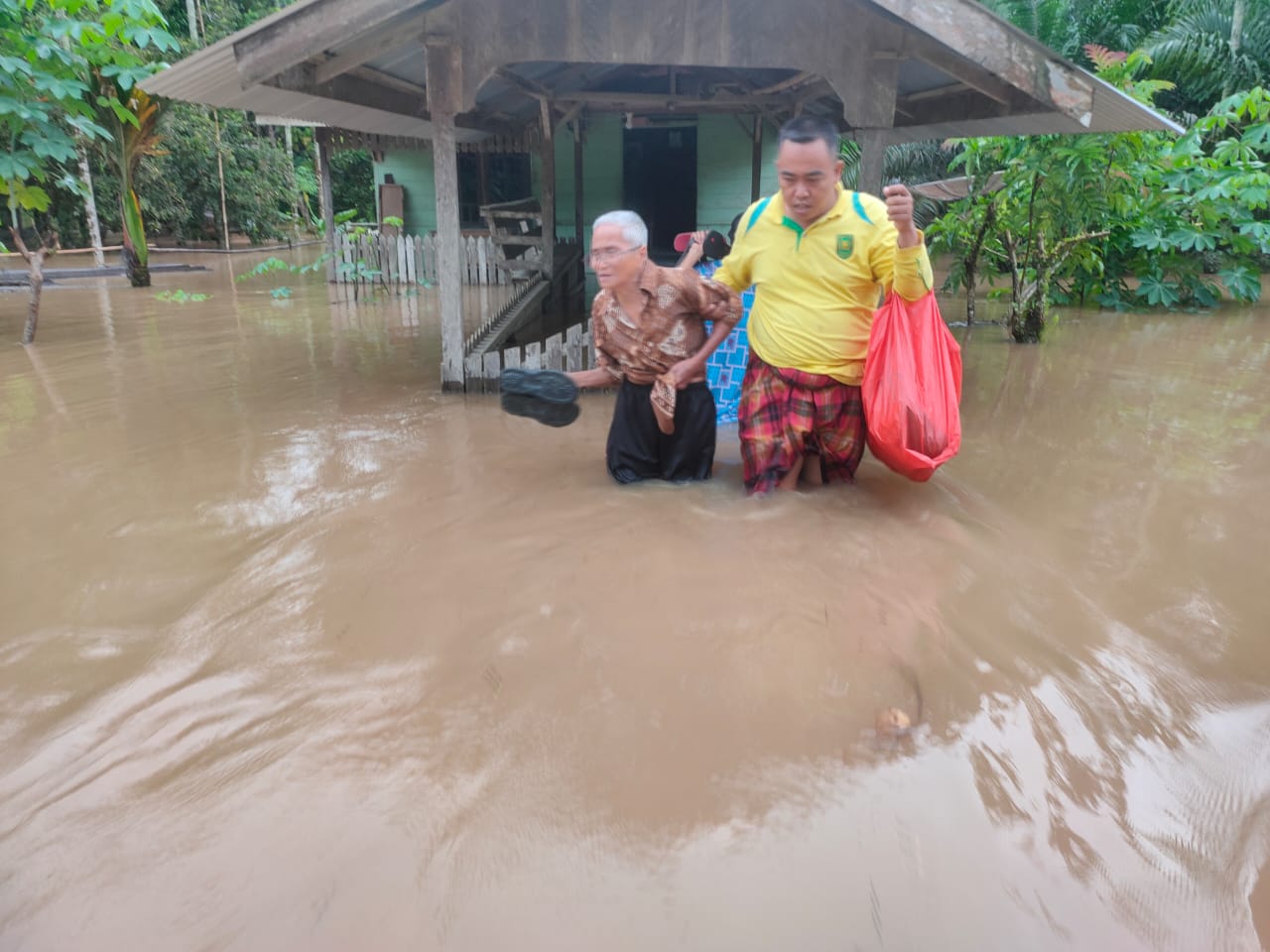 Melihat kondisi banjir yang terjadi kepala Desa Sekara Wayan Diana turun langsung mengevakuasi masyarakat yang terdampak banjir.