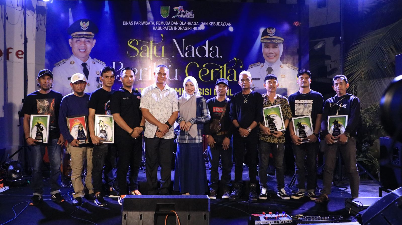 GEMILANGPOS.COM - INHIL — Silaturahmi Musisi Indragiri Hilir (Inhil) Tahun 2025 bertajuk “Satu Nada Beribu Cerita” tidak hanya menjadi ajang temu musisi lintas generasi, tetapi juga panggung apresiasi bagi para legenda yang telah mewarnai perkembangan musik daerah. Acara yang digelar di Best Cafe, Jalan Soebrantas Tembilahan, Sabtu malam (15/11/2025), berlangsung meriah dengan kehadiran ratusan musisi dari berbagai genre.